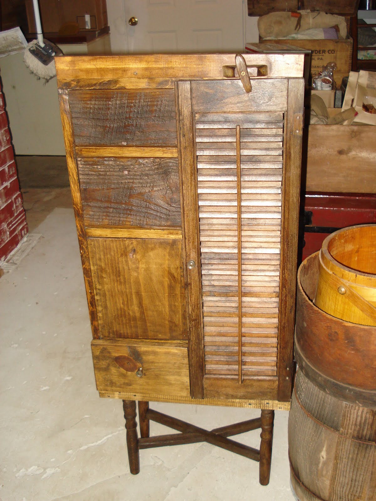 paint it....to many cranies for me....so I just let Lee wax it. It really shows up dark in the pic, but in person it is a little lighter. I think if there was such a thing as a Candle Makers Cupboard then he would have liked this beside him to hold his "stuff"...wax and wicks and such.